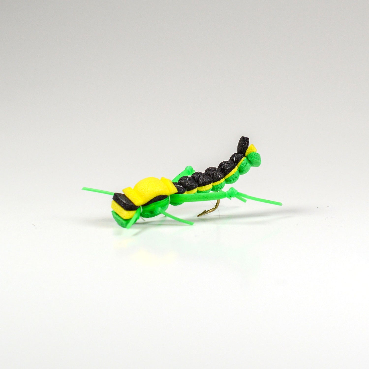 The Foam Hopper in green delivers a realistic, high-floating grasshopper pattern perfect for late summer trout. The olive body mimics natural hoppers, while its foam build keeps it on top in choppy water.