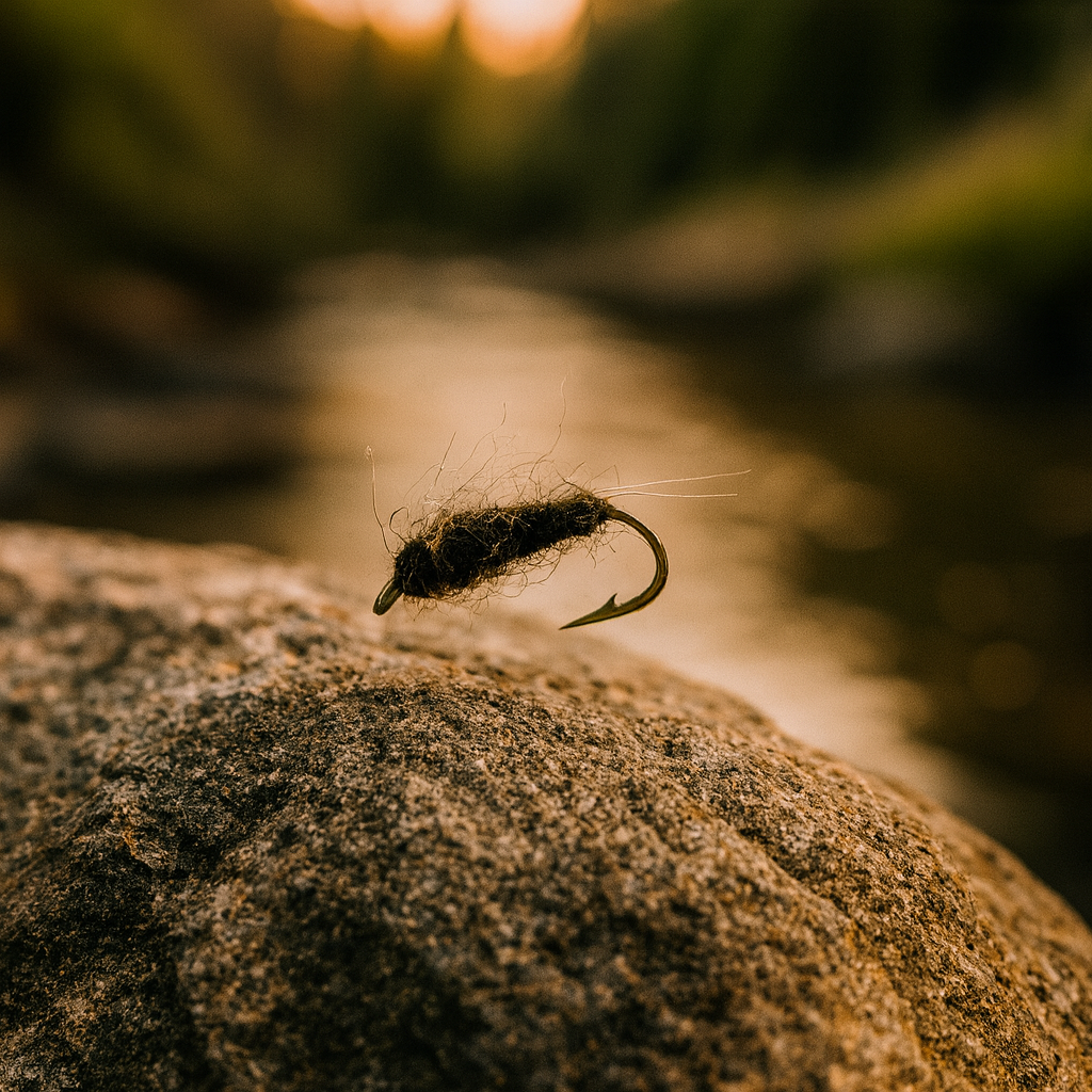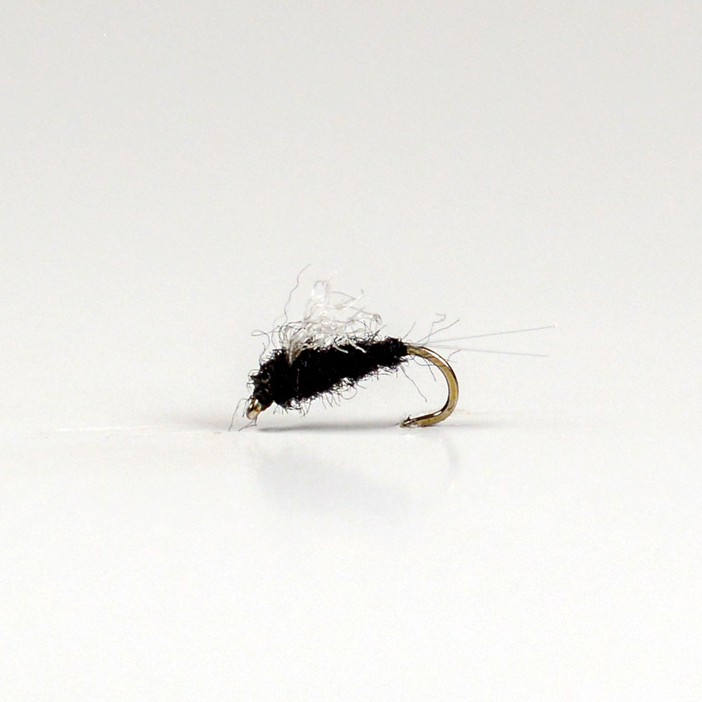 The RS2 in black is a subtle emerger pattern that excels during midge and mayfly hatches. Its slim profile and trailing shuck make it deadly on pressured trout in clear, slow water.