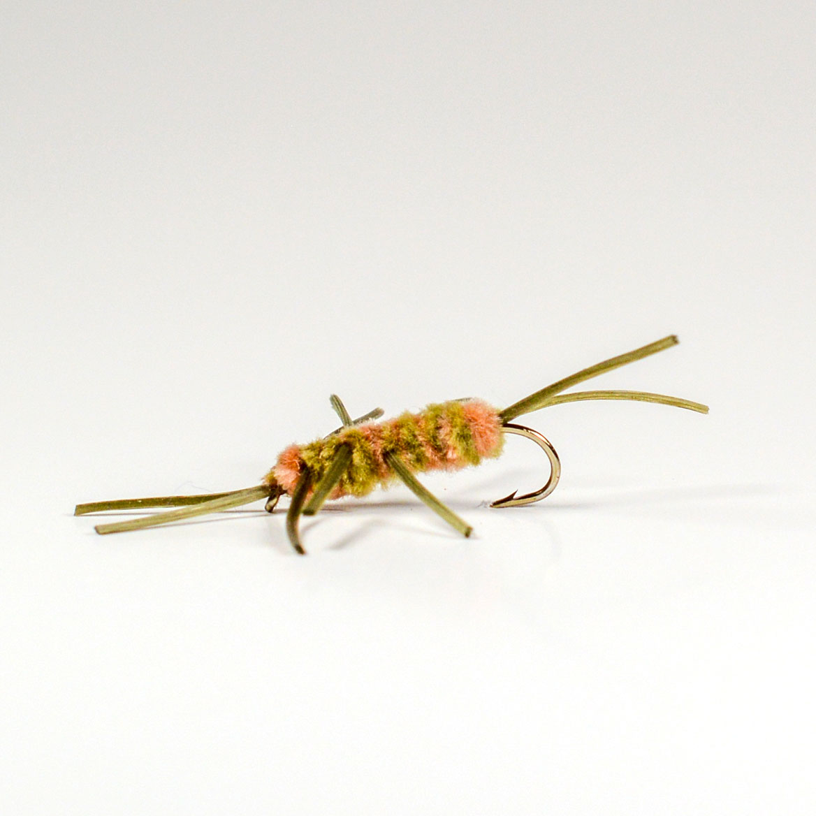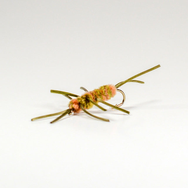 Pat’s Rubber Legs in olive and brown is a highly visible stonefly nymph that works wonders in freestone rivers and deep pools. It rides low and moves well with just enough flash to provoke strikes.