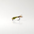 The Tungsten Jighead Hare’s Ear in olive is a subtle, barbless jig-style nymph that excels in clear water. It’s designed to ride point-up with minimal drag and strong hook penetration.