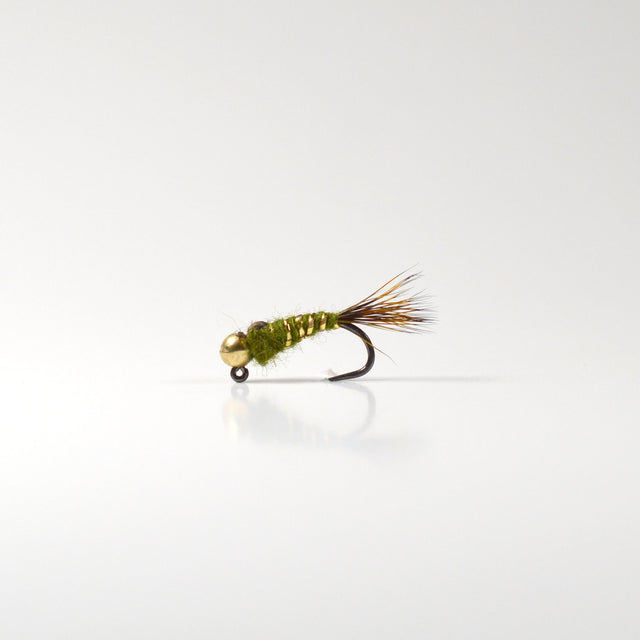 Material: Olive Hare’s Dubbing, Tungsten Bead, Jig Hook (Barbless), Thread