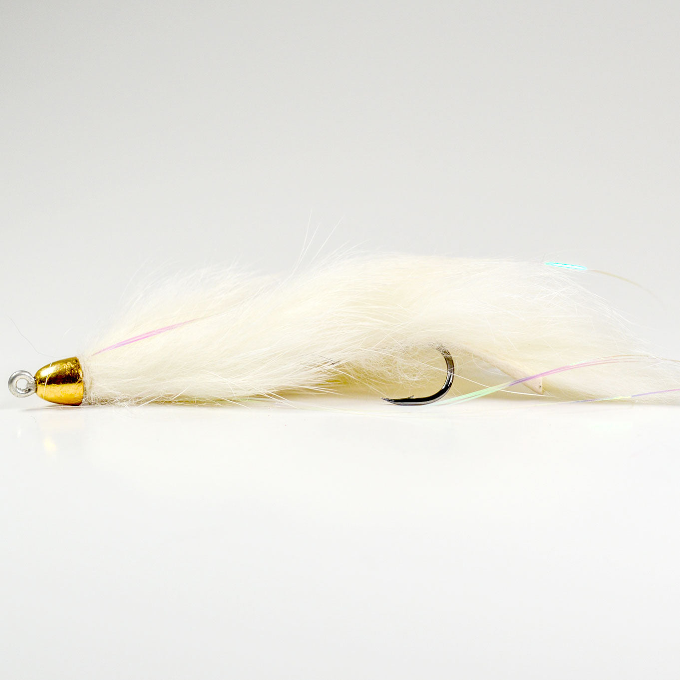 The all-white Conehead Dolly Llama is a high-profile, articulated streamer that mimics sculpins, whitefish, and baitfish in fast water. Excellent for aggressive trout and char.