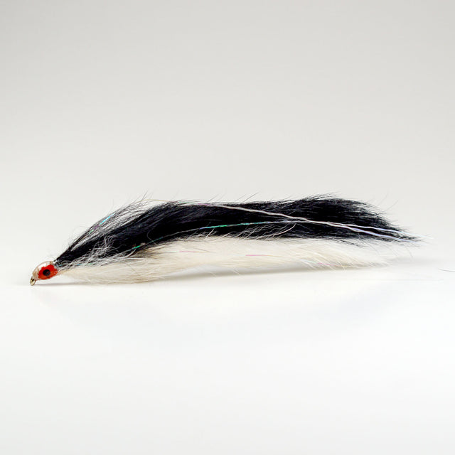 The Double Bunny in black and white delivers high contrast and an irresistible baitfish profile. Its articulated action and twin tails entice predatory trout and bass in all water conditions.