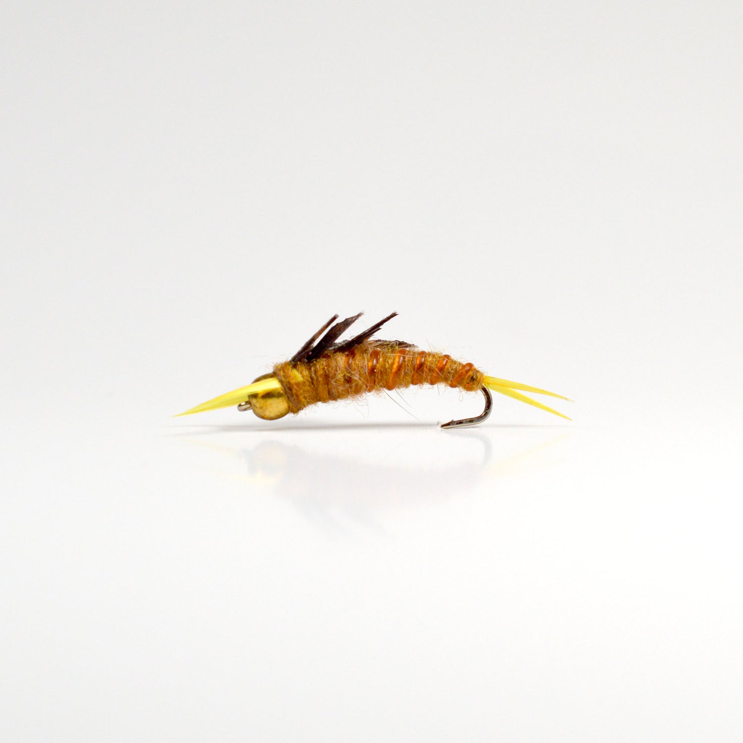 Material: Golden Dubbing, Beadhead, Rubber Legs, Thread, Hook
