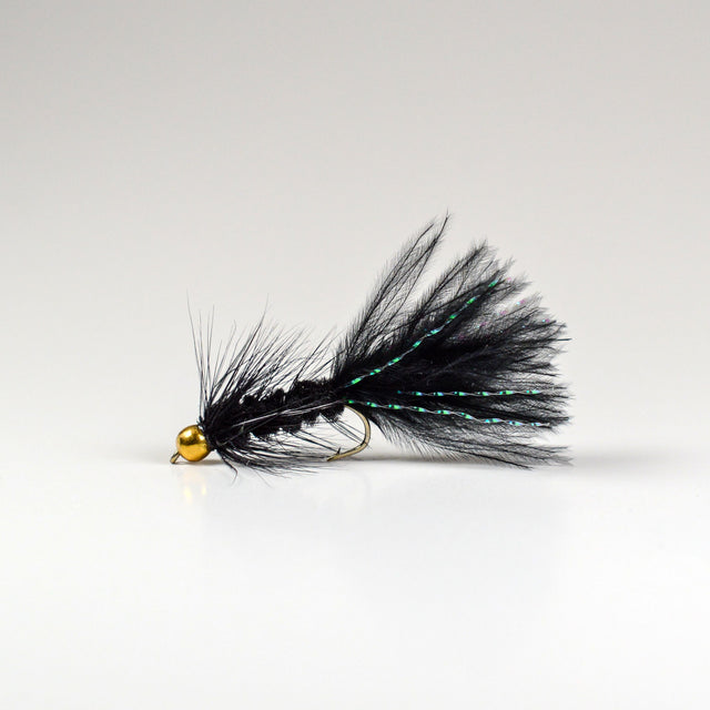The Beadhead Woolly Bugger in black is a versatile streamer that imitates leeches, baitfish, and large aquatic insects. Its beadhead helps it dive quickly and swim with natural motion.